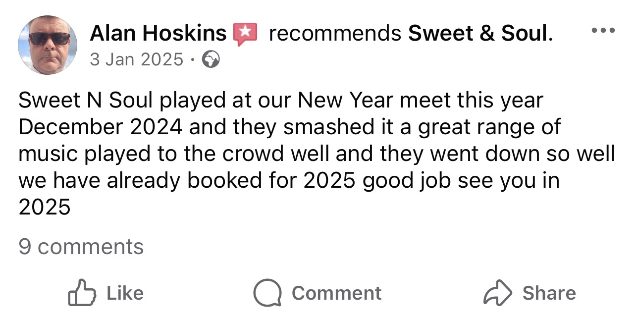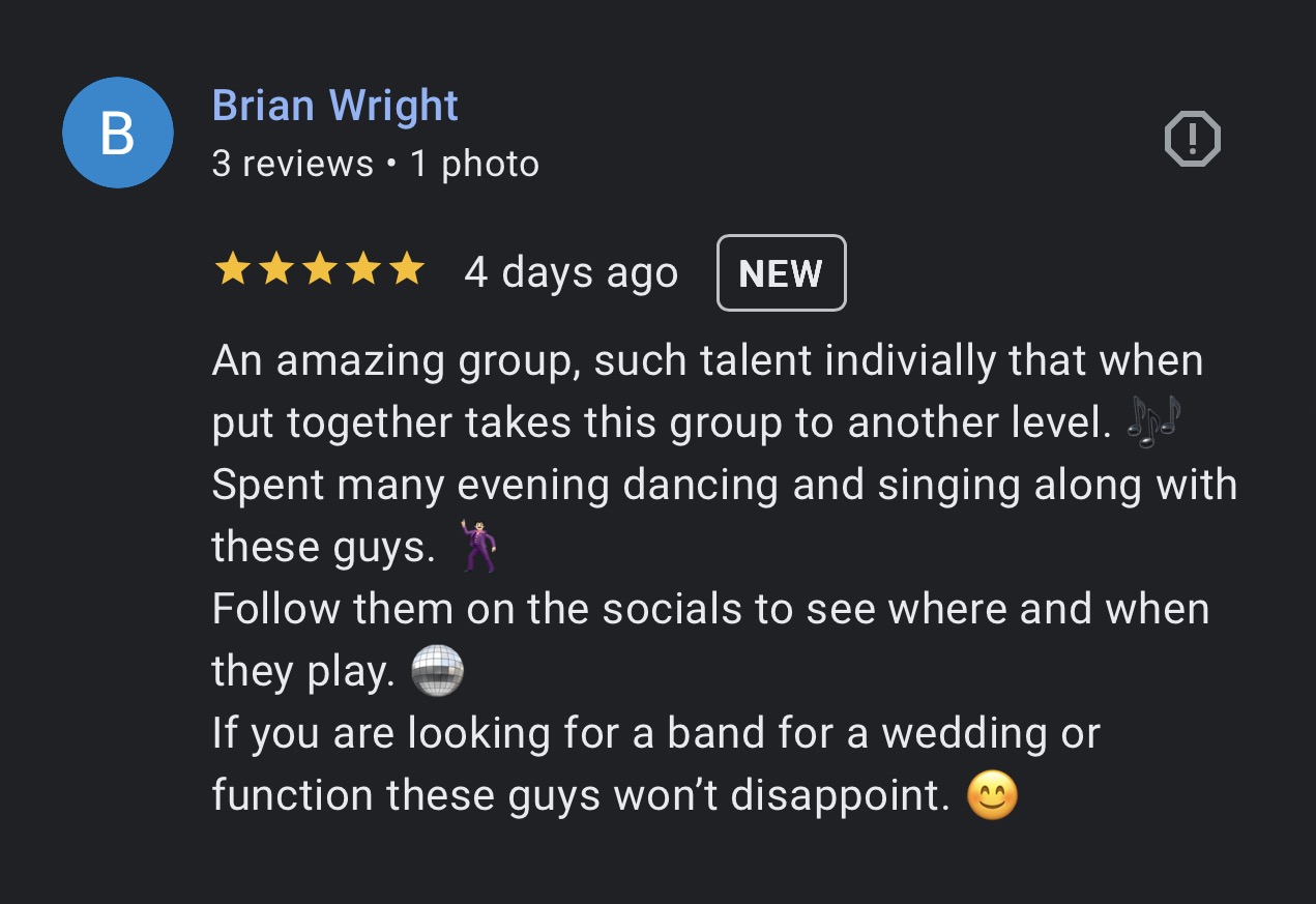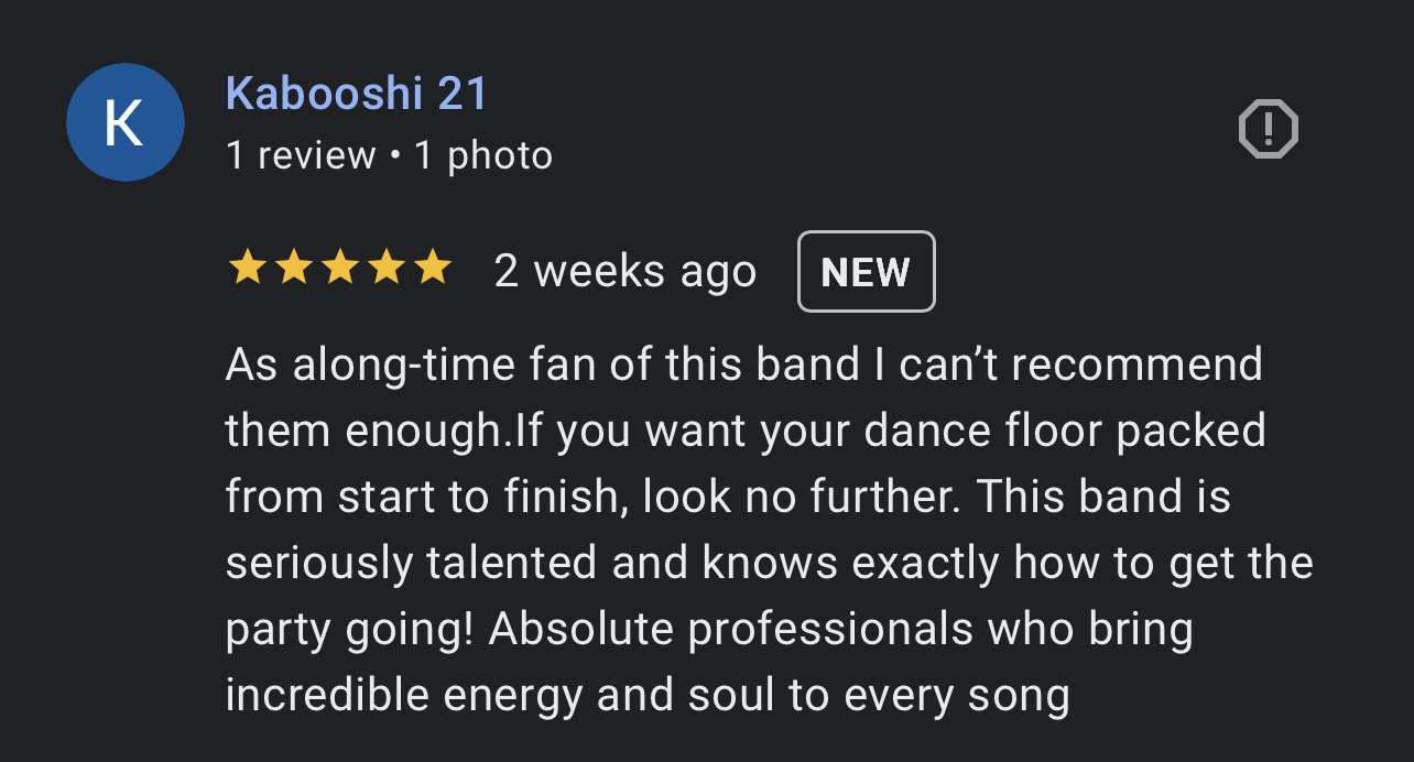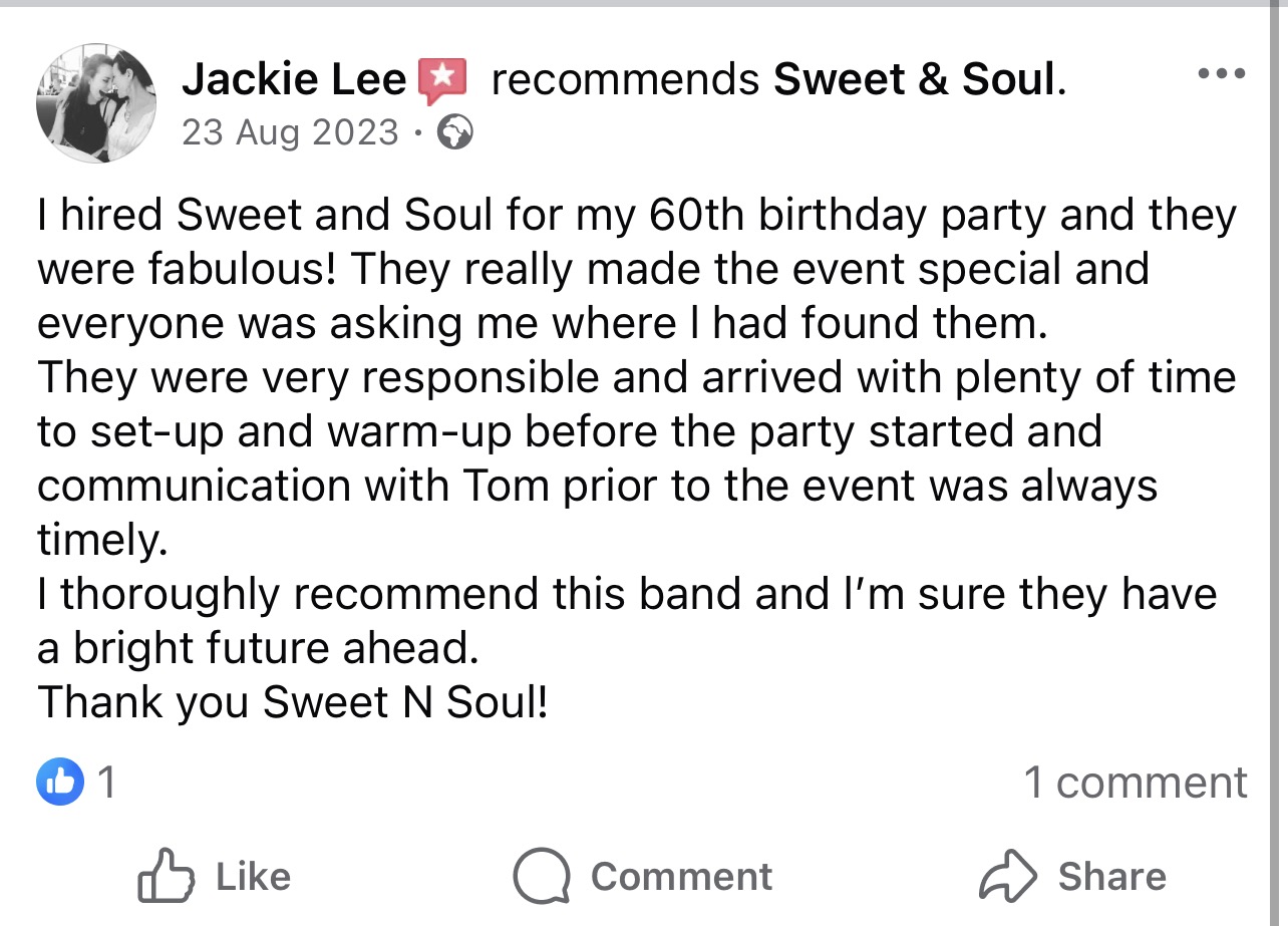 We play every show with everything we’ve got. Don’t just take our word for it… here’s what clients, venues and event organisers have said about the band.